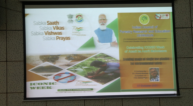 Celebration of Bharat ka Amrut Mahotsav (Iconic-Week 4th-10 October 2021) Awareness programme to Avoid the Single Use Plastic at ICFRE, Dehradun on 7th October 2021