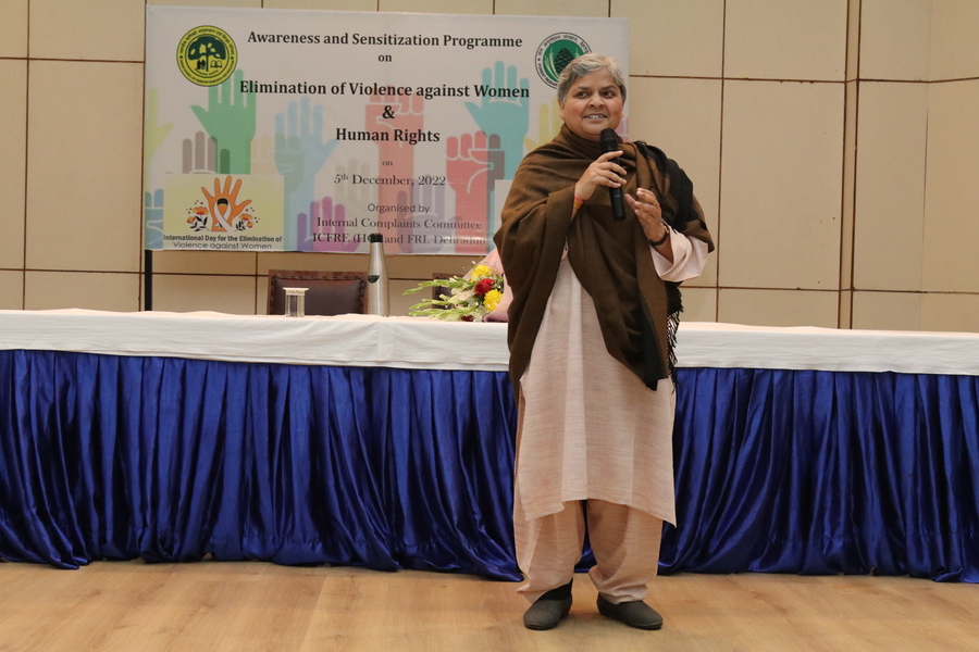 Lecture delivered by Ms. Ramindri Mandrawal on “Awareness and Sensitization Programme on Elimination of Violence against Women and Human Rights†on 5 December, 2022 at ICFRE Auditorium, Dehradun