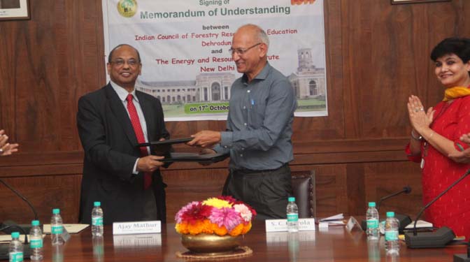 Signing between ICFRE, Dehra Dun and The Energy and Resources Institute (TERI), New Delhi