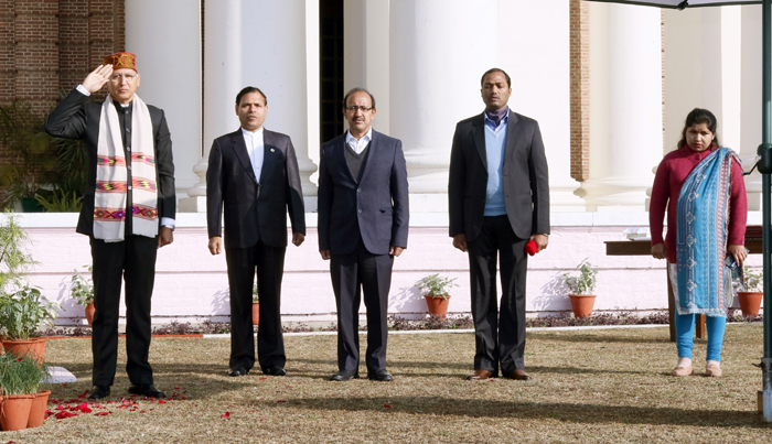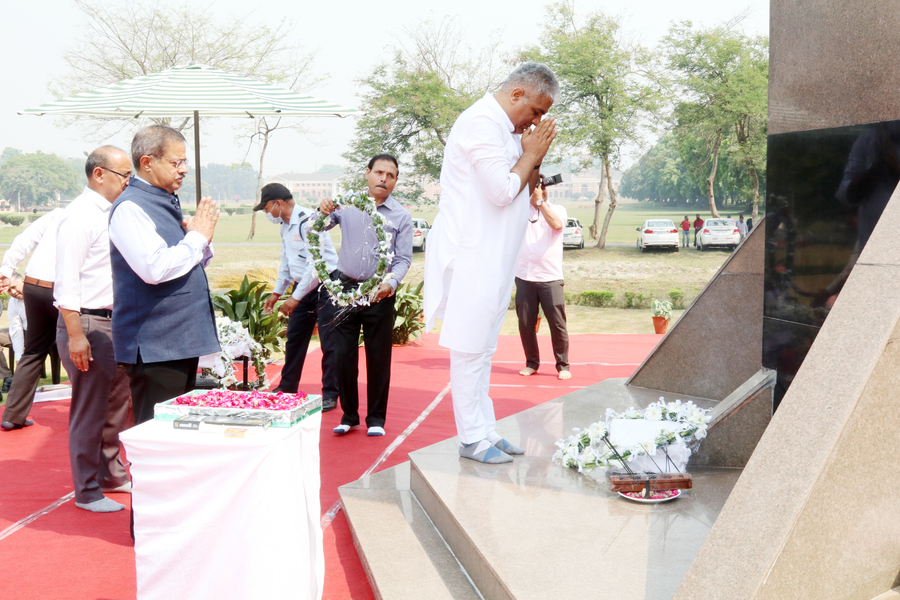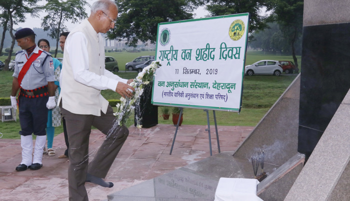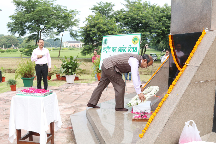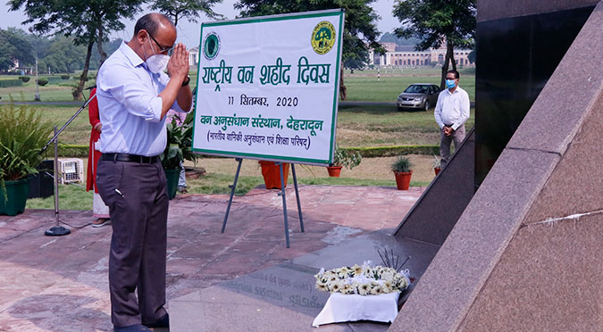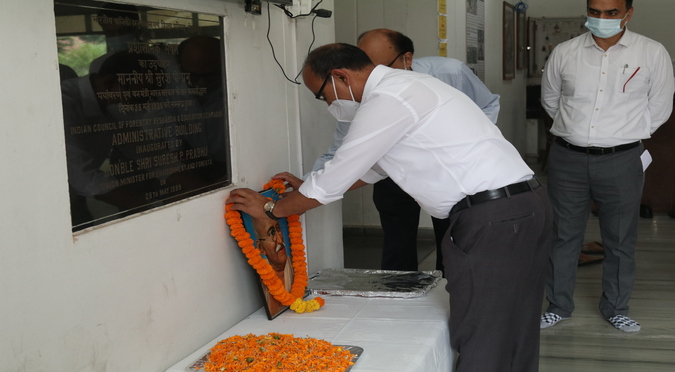Hon'ble Minister of MoEF&CC Shri Bhupender Yadav paid floral tribute to forest martyrs at Forest Memorial, Forest Research Institute, Dehradun on 29th April, 2022